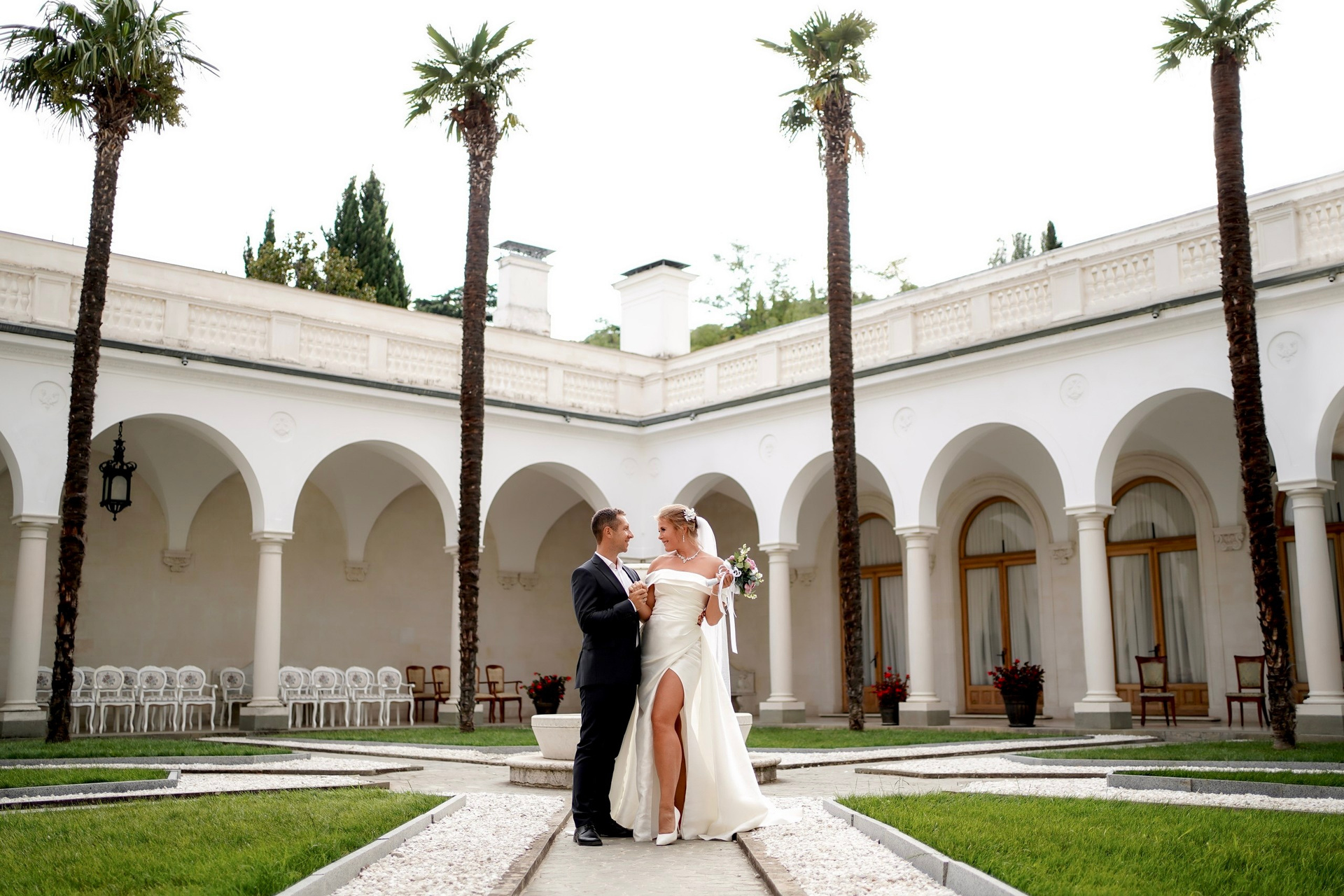 Свадебная фотосессия в Ялте на Ливадийском дворце. Фотограф в Ростове-на-Дону Алёна Чёботова. Борис и Лилия